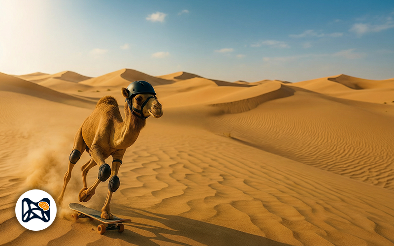 AI generates lifelike movements for the camel and scooter, capturing subtle gestures, interactions with the environment, and dynamic motion. This ensures the teaser feels natural and engaging, allowing viewers to immediately connect with the symbolic journey of resilience and flexibility represented by the camel.